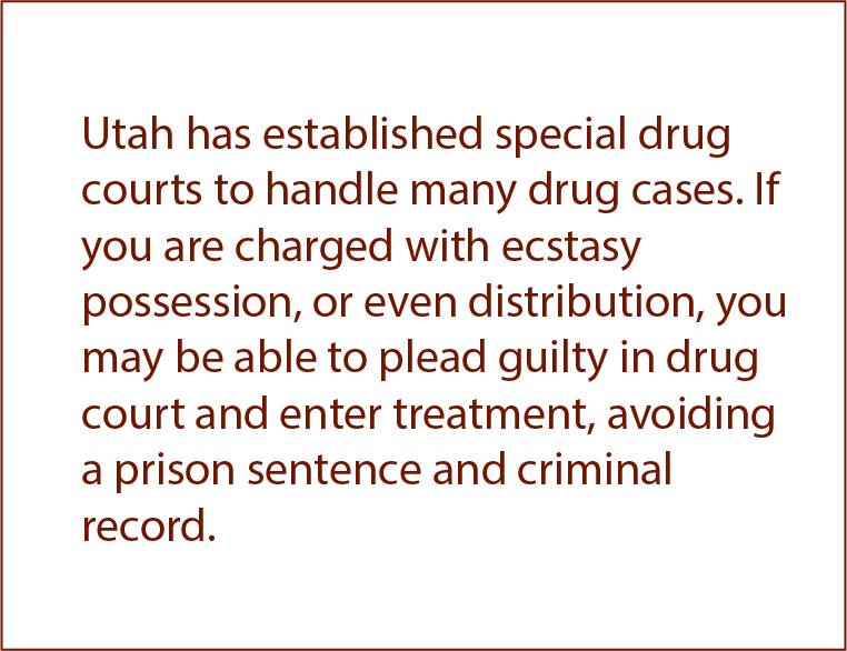 Utah has established special drug courts to handle many drug cases. If you are charged with ecstasy possession, or even distribution, you may be able to plead guilty in drug court and enter treatment, avoiding a prison sentence and a criminal record. You will be subject to drug tests, regular meetings with the court, and other requirements similar to probation; however, your guilty plea is stayed and upon successful completion of all requirements, your charges will be dismissed. We are knowledgeable about all of the treatment alternatives to incarceration, and whenever possible, we work to qualify our clients for such options.