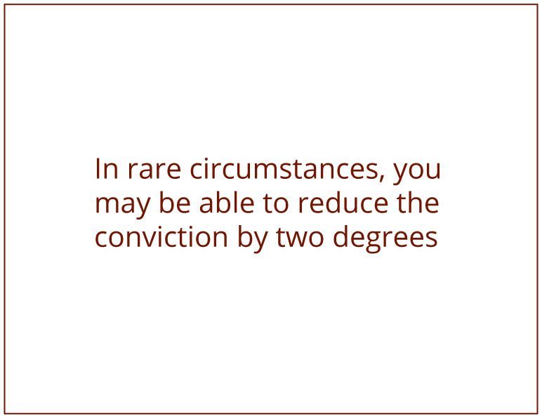 In rare circumstances, you may be able to reduce the conviction by two degrees, but you can never reduce a conviction by more than two degrees. Also, you cannot change the name of the conviction and you cannot reduce offenses that require you to register as a sex offender.