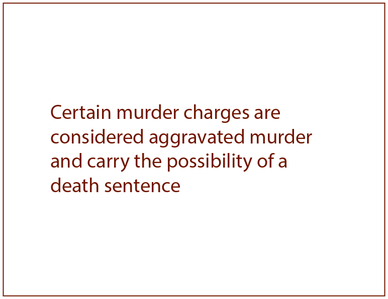 Certain murder charges are considered aggravated murder and carry the possibility of a death sentence. The special circumstances that may qualify a defendant for a capital murder punishment include: