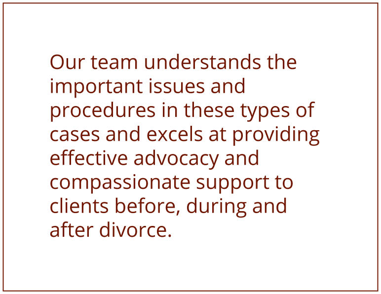 Our team at Intermountain Legal has the knowledge and experience to protect your interests throughout the divorce process — from separation to post-decree modification. As family law practitioners, we are sensitive to how emotionally difficult the divorce process can be. We listen to our clients, strive to understand their needs and to be supportive counselors and effective advocates throughout. Call our office today at 801-970-2800 or contact us online to schedule a 30-minute attorney consultation for the flat fee of $125 to discuss your family law matter.